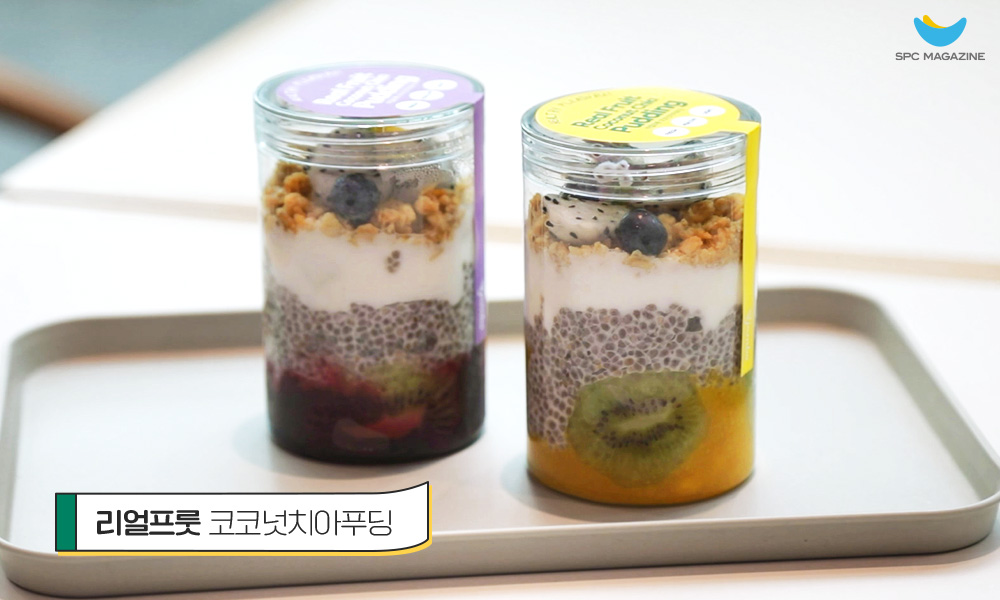 코코넛 밀크로 불린 치아씨드가 들어간 리얼프룻 코코넛치아푸딩