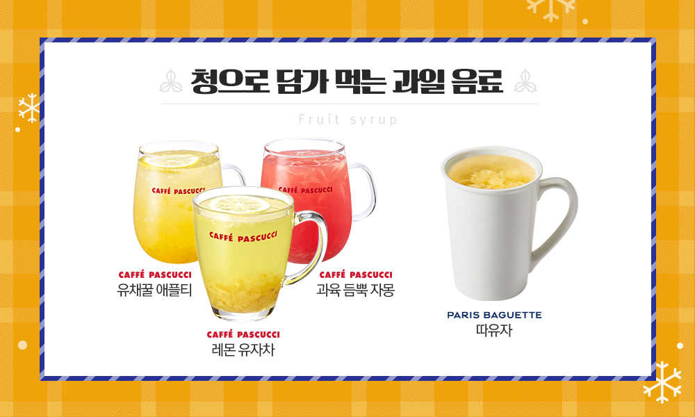 겨울 과일을 활용한 파스쿠찌와 파리바게뜨의 과일 청 음료